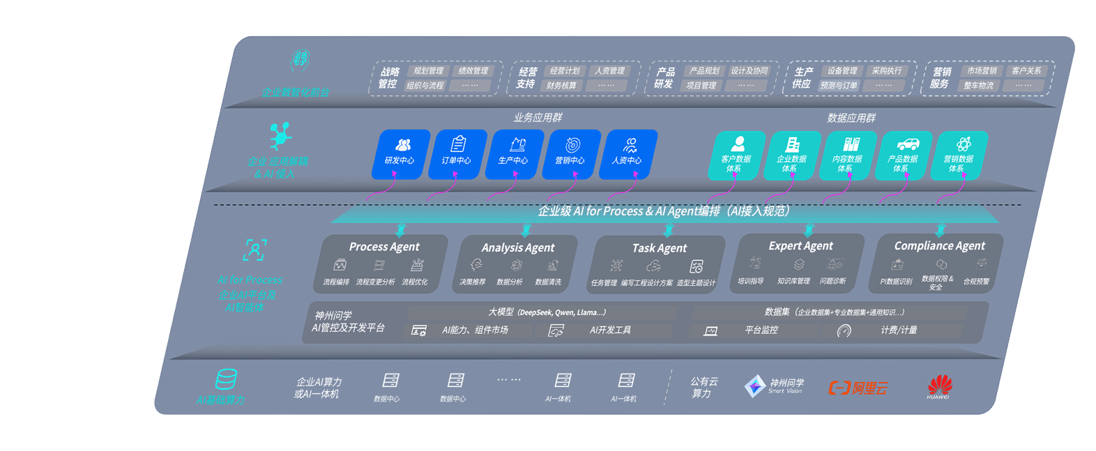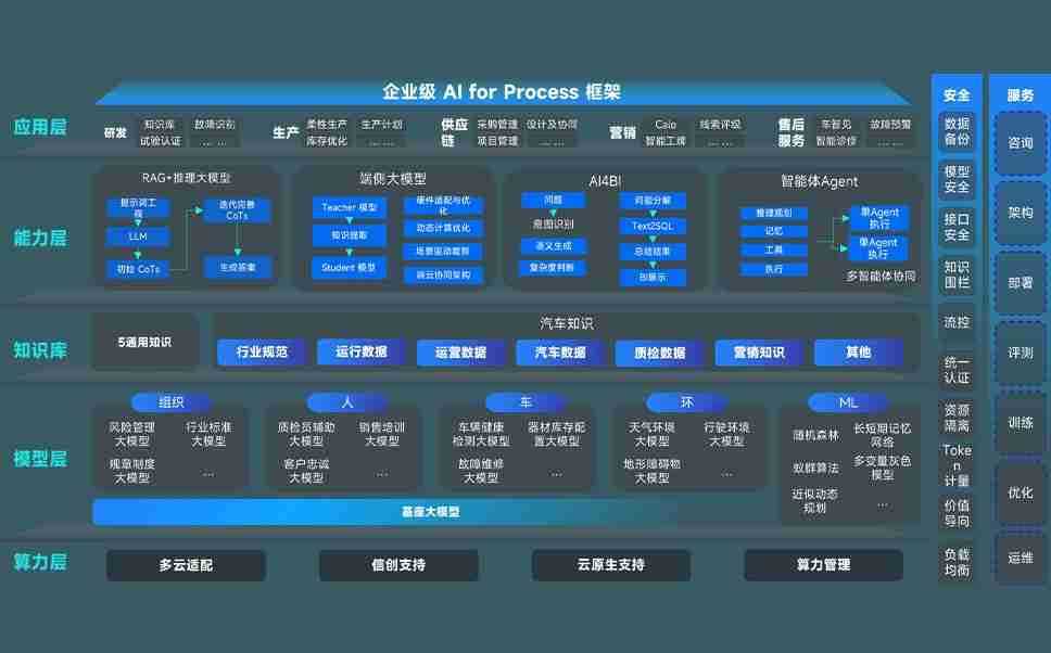 端到端的一站式AI工作空间深度融合了从企业战略规划到日常经营的全流程业务板块,,,,定向解决车企内部领域多、、部门多、、、、链条长、、场景碎片化等难题,,,,支持车企快速构建以AI为核心的生产力写作体系,,实现任务执行与AI能力的无缝集成与交互